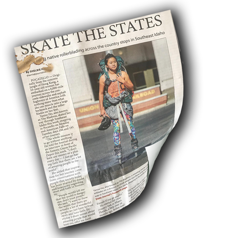 In November 2018, I completed a 7-month, 4000-mile solo rollerblading odyssey across the US. And I did it with no money and no safety net, but with tons of faith in humanity.